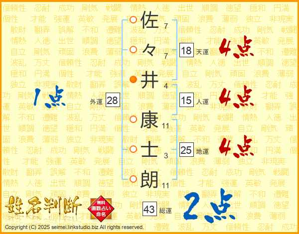 佐々井康士朗さんの地運は25画の4点!