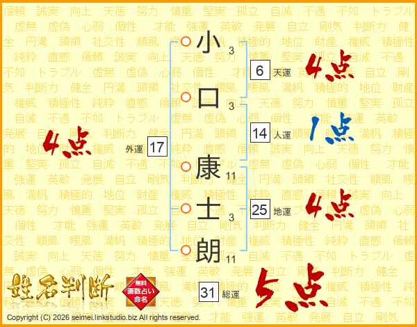 小口康士朗さんの総運は31画の5点!
