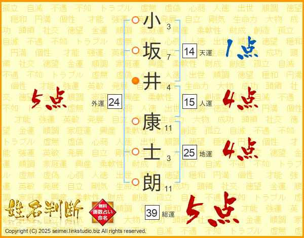 小坂井康士朗さんの総運は39画の5点!