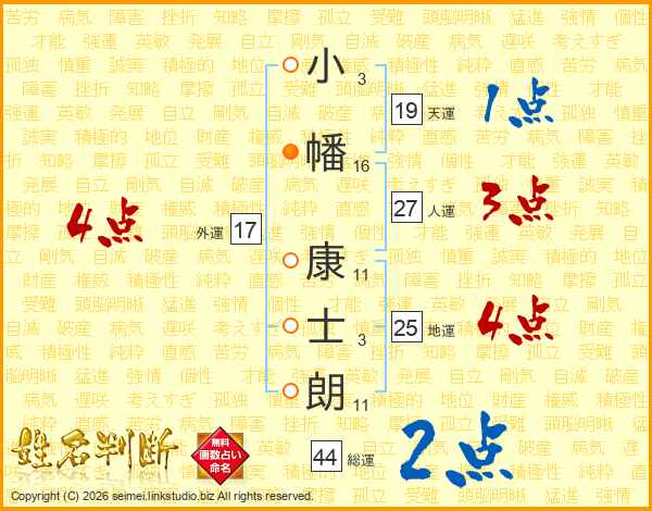 小幡康士朗さんの総運は44画の2点!