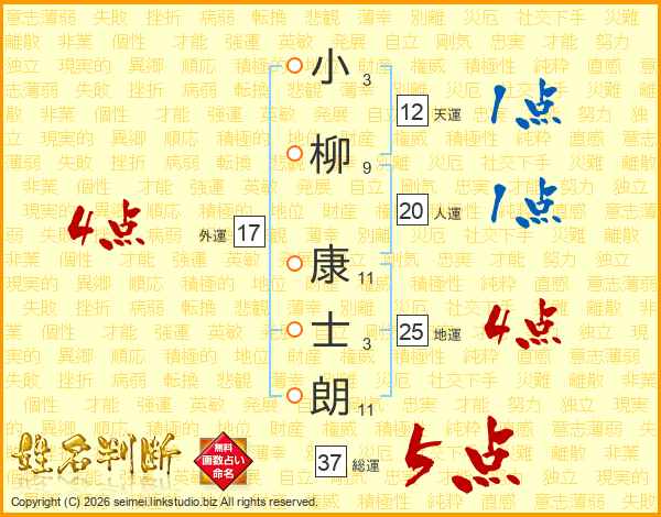 小柳康士朗さんの総運は37画の5点!