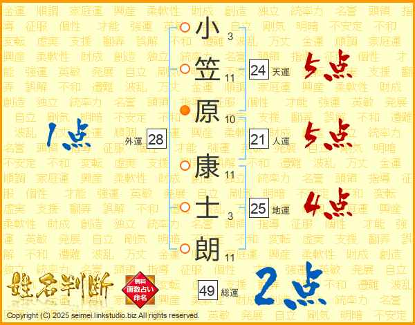 小笠原康士朗さんの地運は25画の4点!