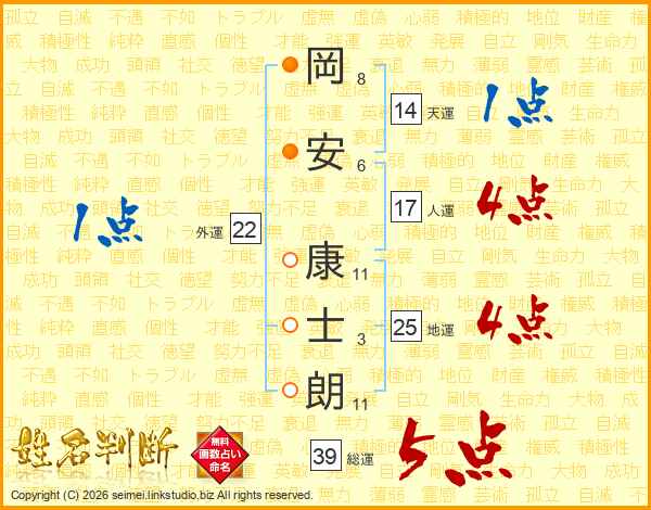 岡安康士朗さんの総運は39画の5点!