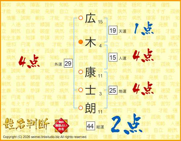 広木康士朗さんの総運は44画の2点!