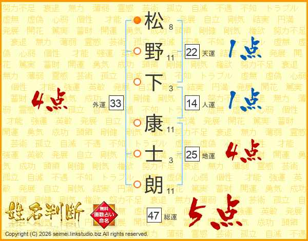 松野下康士朗さんの総運は47画の5点!