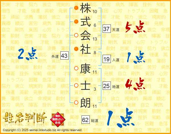 株式会社康士朗さんの地運は25画の4点!