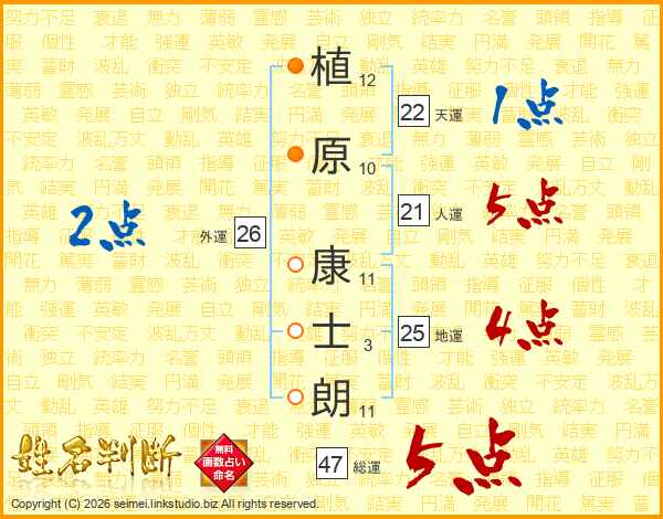 植原康士朗さんの総運は47画の5点!