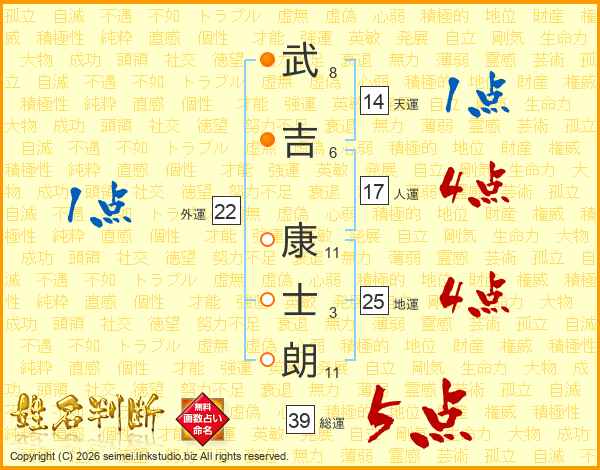 武吉康士朗さんの総運は39画の5点!
