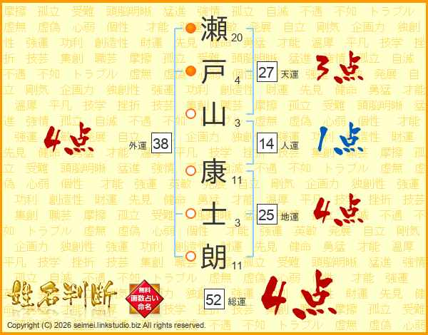 瀬戸山康士朗さんの総運は52画の4点!