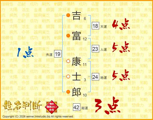 吉富康士郎さんの天運は18画の4点!