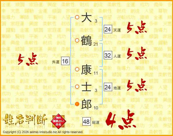 大鶴康士郎さんの総運は48画の4点!