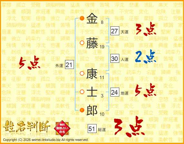 金(8画)藤(19画) 康(11画)士(3画)郎(10画)