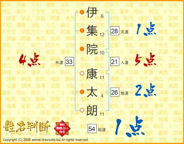 伊集院康太朗さんの外運は33画の4点!
