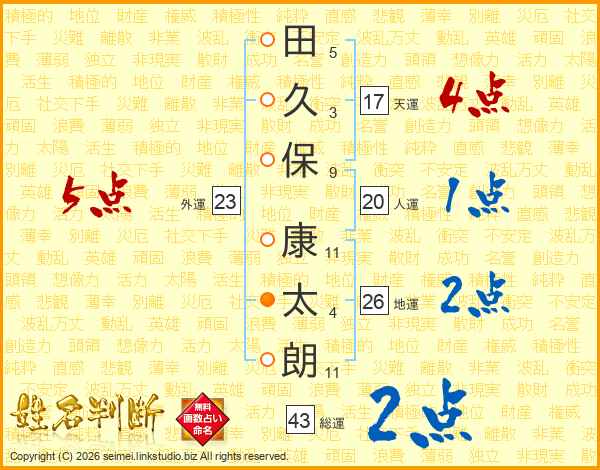 田久保康太朗さんの地運は26画の2点!