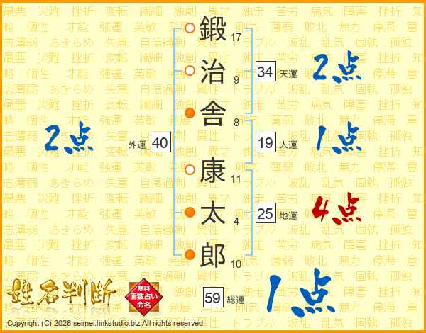 鍛治舎康太郎さんの総運は59画の1点!