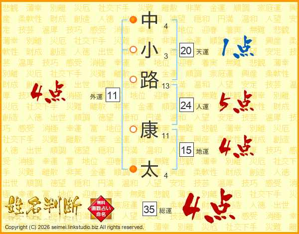 中小路康太さんの総運は35画の4点!