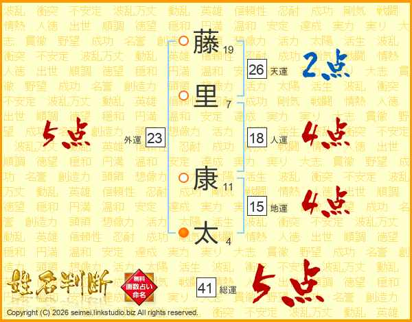 藤里康太さんの総運は41画の5点!