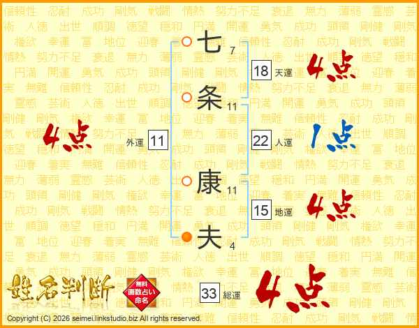 七条康夫さんの総運は33画の4点!