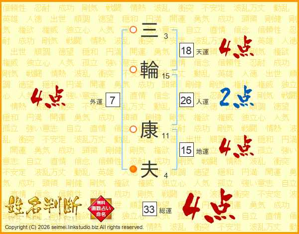 三輪康夫さんの総運は33画の4点!