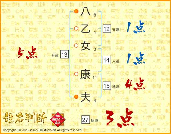 八乙女康夫さんの総運は27画の3点!