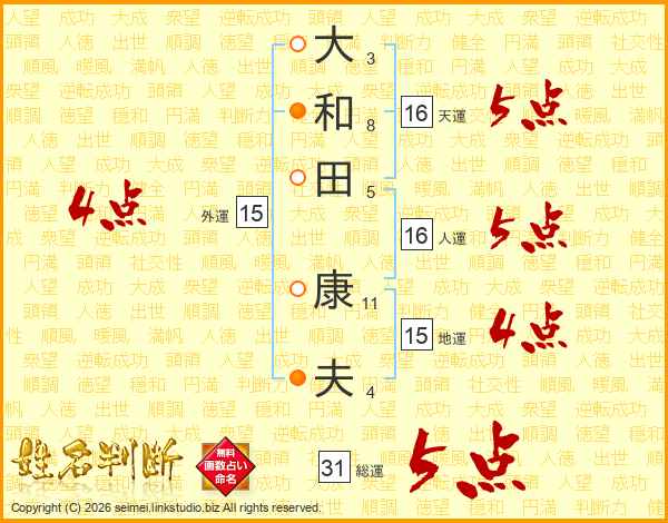 大和田康夫さんの総運は31画の5点!
