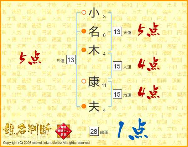小名木康夫さんの天運は13画の5点!