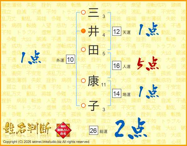 三井田康子さんの総運は26画の2点!