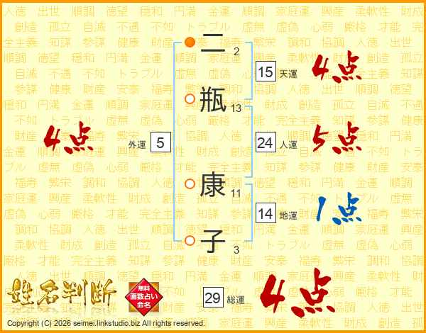 二瓶康子さんの総運は29画の4点!