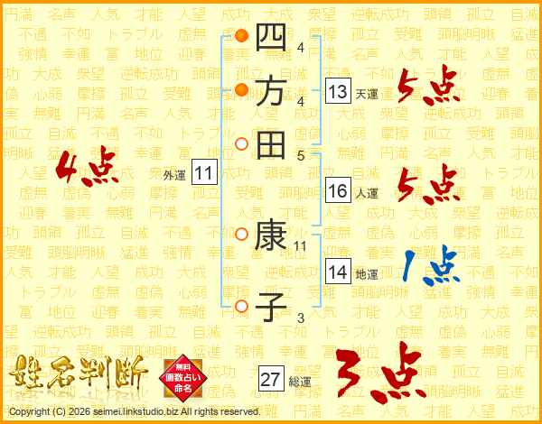 四(4画)方(4画)田(5画) 康(11画)子(3画)