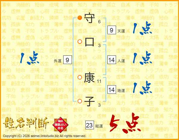守口康子さんの総運は23画の5点!