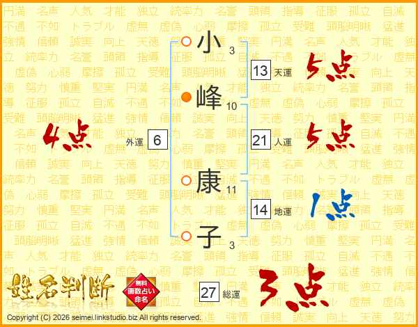 小峰康子さんの総運は27画の3点!