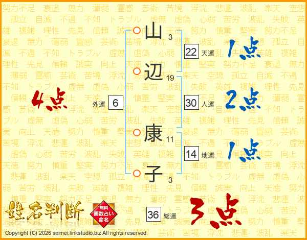 山辺康子さんの総運は36画の3点!