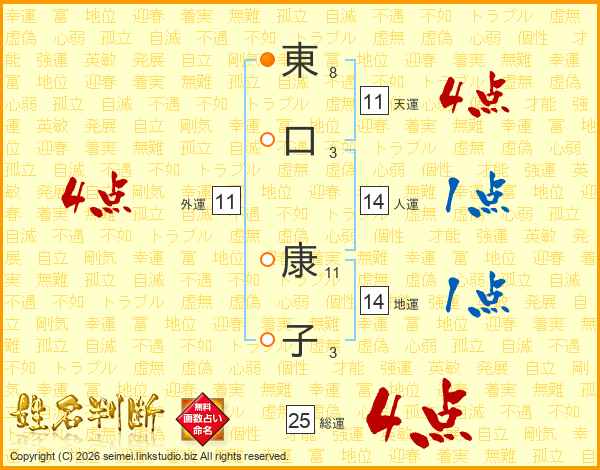 東口康子さんの総運は25画の4点!