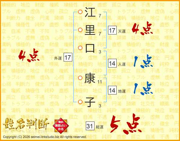 江里口康子さんの総運は31画の5点!