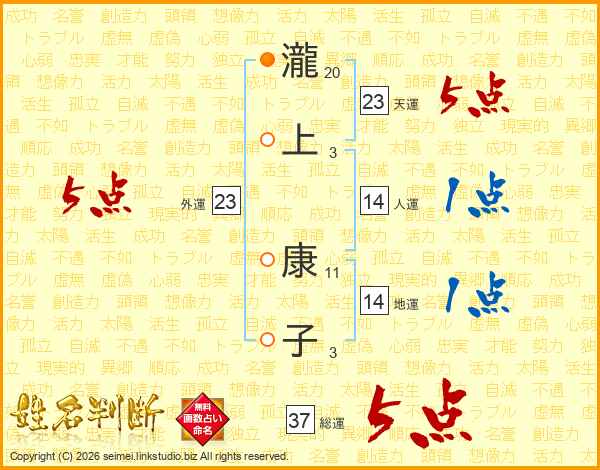 瀧上康子さんの外運は23画の5点!