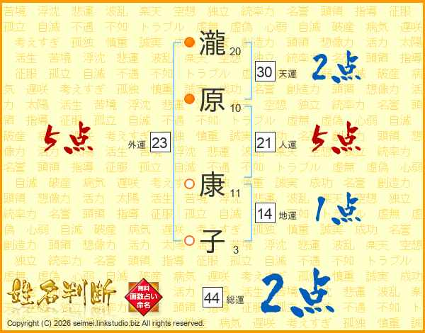 瀧原康子さんの総運は44画の2点!