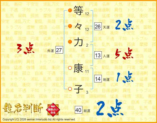 等々力康子さんの天運は26画の2点!