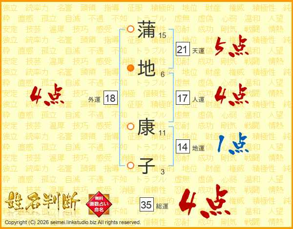 蒲地康子さんの総運は35画の4点!