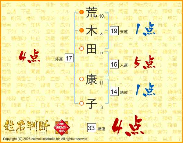 荒木田康子さんの総運は33画の4点!