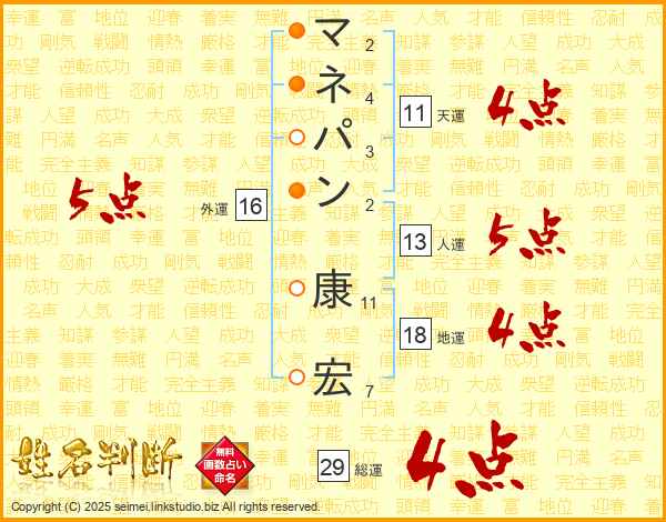 マネパン康宏さんの天運は11画の4点!
