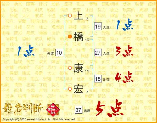 上橋康宏さんの総運は37画の5点!