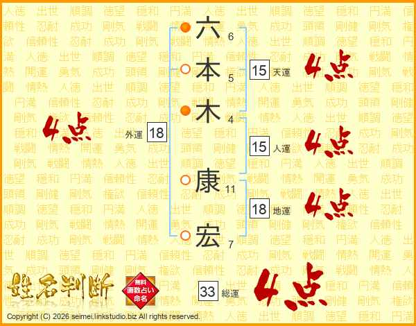 六本木康宏さんの総運は33画の4点!