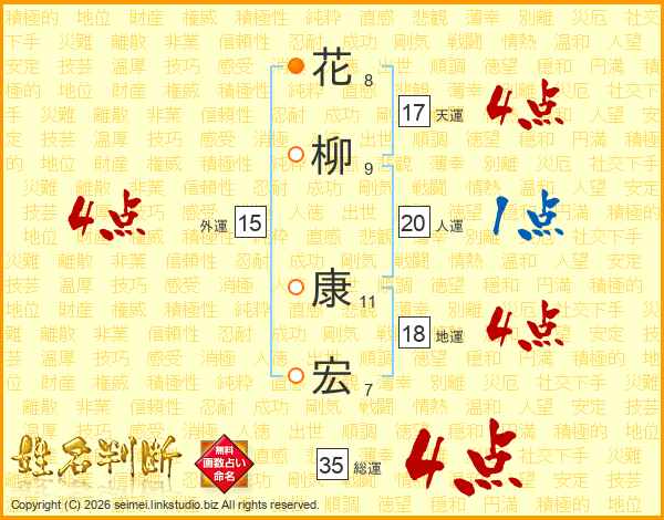 花柳康宏さんの総運は35画の4点!