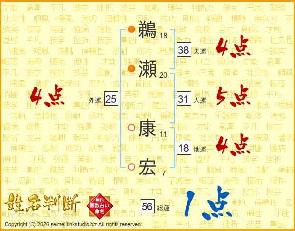鵜瀬康宏さんの総運は56画の1点!