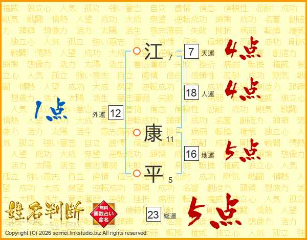 江康平さんの総運は23画の5点!