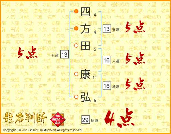 四方田康弘さんの総運は29画の4点!