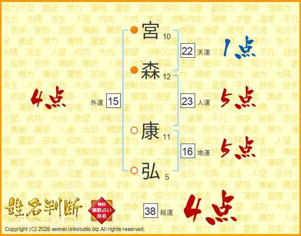 宮森康弘さんの総運は38画の4点!
