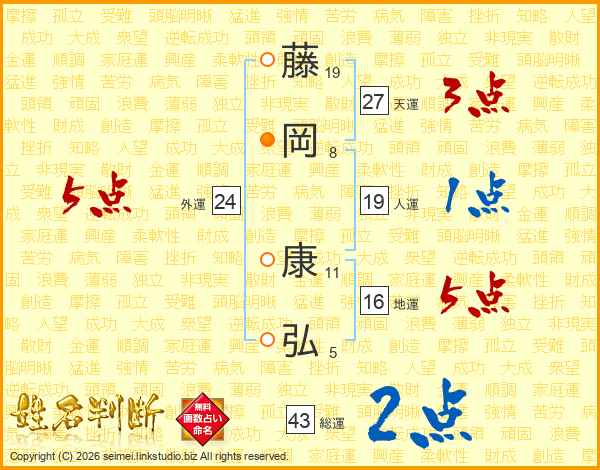 藤岡康弘さんの総運は43画の2点!
