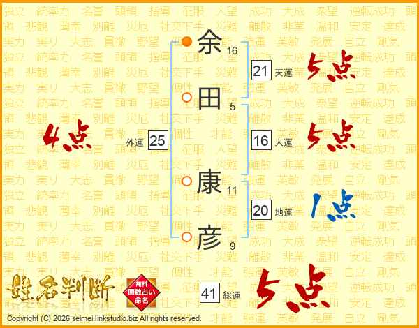 余田康彦さんの天運は21画の5点!