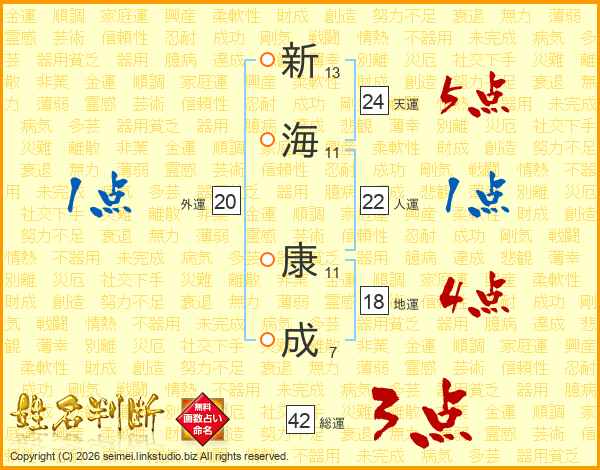 新海康成さんの人運は22画の1点!